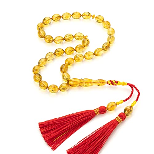 Amber Tasbih|Handgjord|Bärnsten Muslimsk Rosenkrans | Islamiska bönpärlor,32g|kahraman|Misbaha|Kehribar|Bernstein Tesbih |