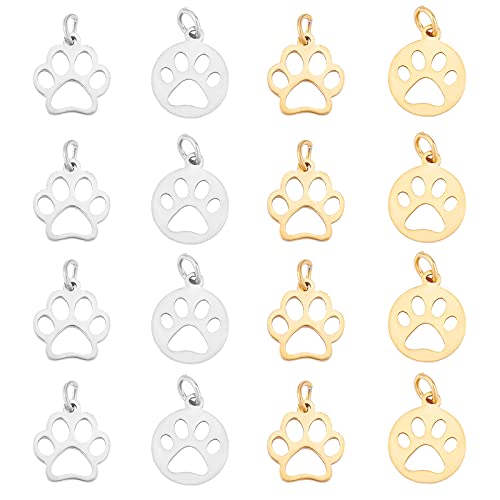 UNICRAFTALE cirka 16 st 2 stilar hund tassavtryck hängen rostfritt stål berlocker guld och rostfritt stål färg hänge för gör-det-själv smyckestillverkning, hål 4 mm