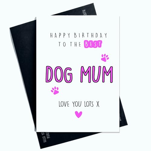 'Happy Birthday To The Best Dog Mum Love you Lots' födelsedagskort för hund mamma från hunden rosa tassavtryck och kärlekshjärta AP91