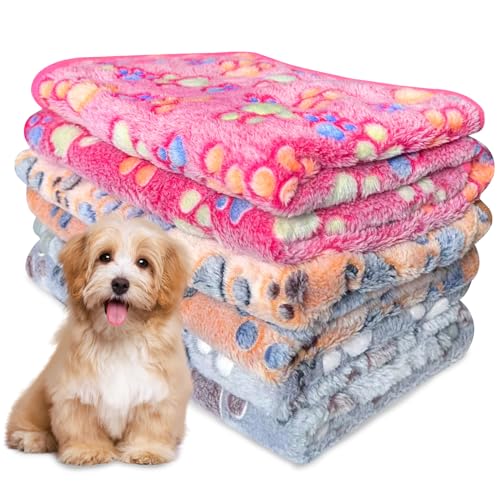 Ceboic 3 st husdjur hundfilt, fluffig fleece valpfiltar mjuk söt tassavtryck husdjurskudde, tvättbara varma sovdynor för små medelstora husdjur hund katt (76 x 52 cm)
