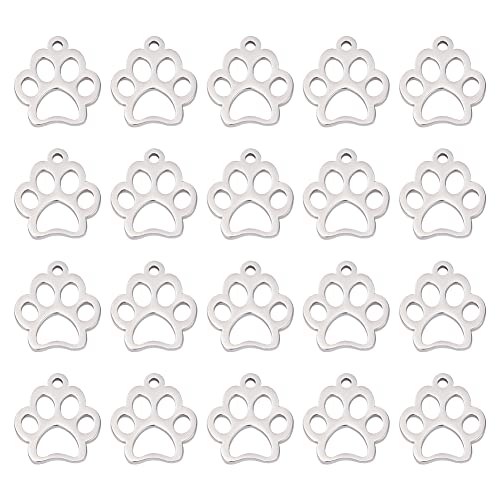UNICRAFTALE 20 st 12,9 mm hund tassavtryck hängen 304 rostfritt stål berlocker silvertoner 1,5 mm litet hål hund tass berlock metallmaterial hänge för gör-det-själv halsband armband