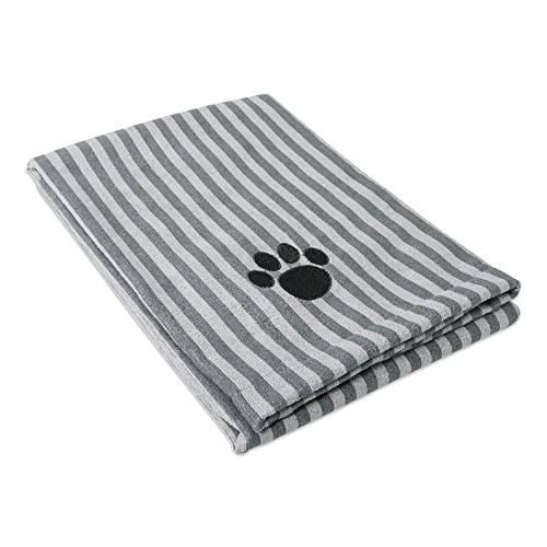 DII Ben torr mikrofiber hund badhandduk med broderat tassavtryck – 112 x 70 cm – grå rand
