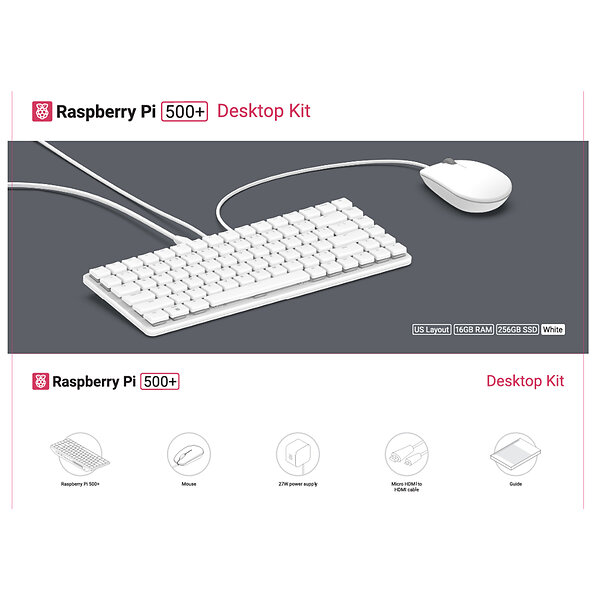 Raspberry Pi Official 500+ Desktop Kit EU (US tastatur, EU strømforsyning)