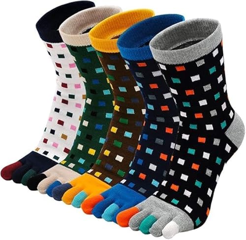 PUTUO Tåstrumpor för män, 5 par, fingerstrumpor i bomull, crew-strumpor med tå för sport, löpning och atleter, Flerfärgad-1, 40-44 EU