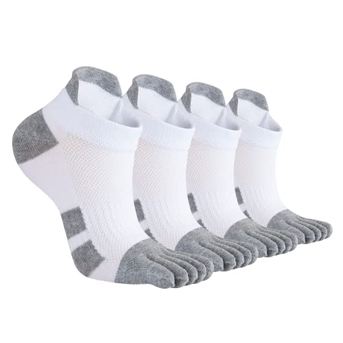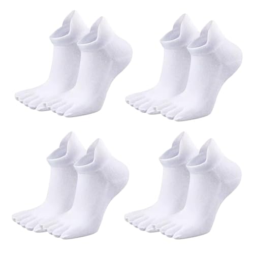 FUIPVGI 4 par tåstrumpor, löparstrumpor för herr och dam, fingerstrumpa i bomull, låg strumpa för fitness löpning eller vardag (vit), Vitt och blått, 37-42 EU