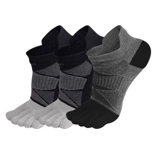 TRIWONDER 5 fingrar halkfria löparstrumpor för män kvinnor - 3 par separata ventilerande tåstrumpor för gym löpning spår fitness yoga, Grå x 2 + svart x 1, Medium