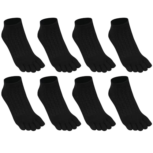 SITAKEGS tåstrumpor, 8 par damer fem-fingerstrumpor tränare löpning ankelstrumpor, ventilerande bomull besättningsstrumpor sportstrumpor lågt skurna strumpor (36–41), svart, 38