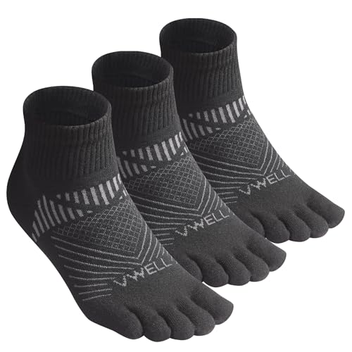 VWELL Tåstrumpor för män och kvinnor COOLMAX fem fingerstrumpor atletisk löpning strumpor kvartal ankel tåstrumpor (3 par), Svart, Large