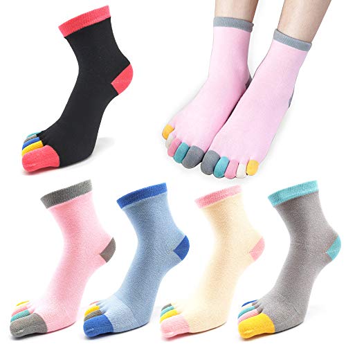 Tåstrumpor dam Fem fingerstrumpor gjorda av bomull, damsneakerstrumpor med tår för sport Löpning fritid, andningsbara och färgglada strumpor, 4/5 par (Flerfärgad-6, 36-41)