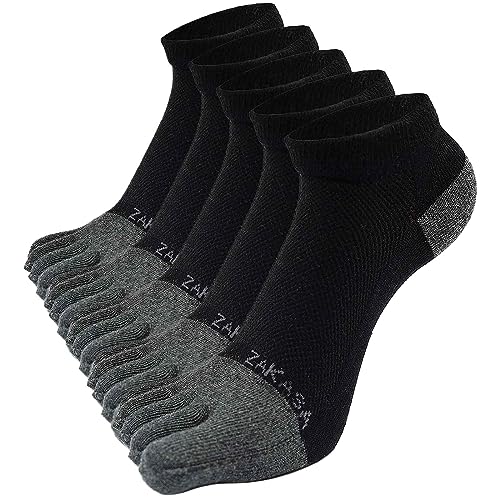GINZIN 6 par tåstrumpor löpning fem fingerstrumpor ankelstrumpor för män, Svart x 6, 43-45 EU