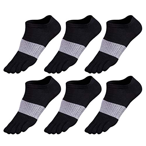 Roliga tår män tåstrumpor barfota löpning lätt -värde 6 par pack- storlek 6-12, 3 svart/3 grå, 43-47 EU