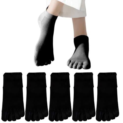 Daelesr 5 par separata tåstrumpor dam 35–42, ventilerande bomull sport korta strumpor, fem fingrar halkfria strumpor, ankel löpning strumpor, Svart, 35-42 EU