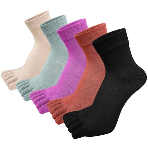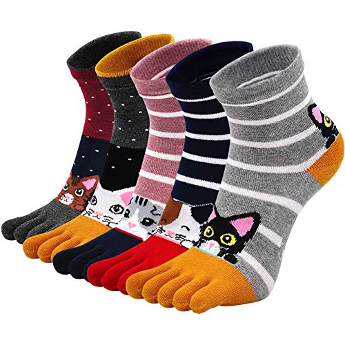 LOFIR Tåstrumpor dam 5 fingrar strumpor av bomull färgglada strumpor löpning ledig sportskola strumpor sneakers strumpor med tår, storlek 35–41, 5 par, Färg 3, 35-41 EU