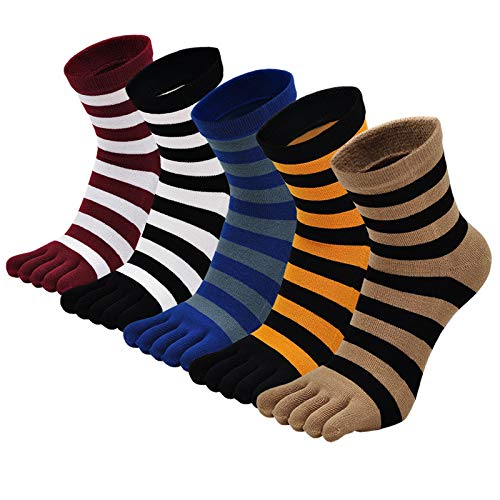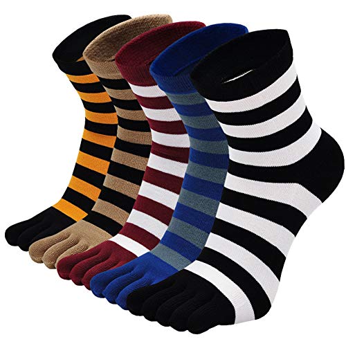 LOFIR Tåstrumpor män 5 fingrar strumpor av bomull sport skola löpning strumpor män sneakers strumpor med tår, storlek 39–47, 5 par, Färg 8, 39-44 EU