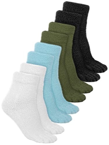 Bencailor 4 par damtåstrumpor färgglada tåseparatorstrumpor luddig varm fem tåstrumpor för kvinnor vinter löpning, Svart, vit, grågrön, ljusgrå, 15-18