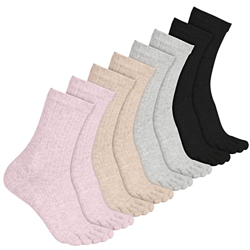 Bencailor 4 par kvinnor fem tåstrumpor bomull tå strumpor atletisk löpning lång öppen tå kvinnors bomull crew ankelstrumpor, Svart, beige, rosa, grå, one size