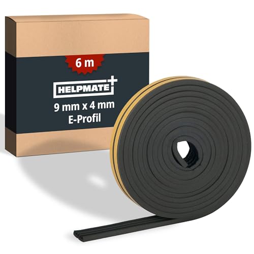 HjälpMATE – självhäftande tätningstejp för fönster och dörrar – fönstertätning/dörrtätning för att isolera luckor med 2 till 3,5 mm bredd – tätningstejp 9 x 4 mm (E-profil | 6 meter | svart)