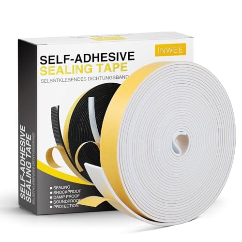 Inwee Självhäftande väderskydd,Tätningstejp Självhäftande 20 mm bred X 3 mmTätningstejp för dörrar fönster, dörrar och dragskydd, totalt 10 m lång