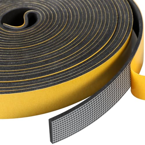 AiQInu Tätningstejp för dörrar, 16 m (52,5 fot) tätningstejp självhäftande dörrtätning fönster skumgummi tätningstejp, skumband dörrtätning fönster ljudisolering golvmatta