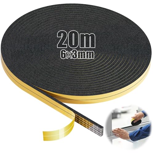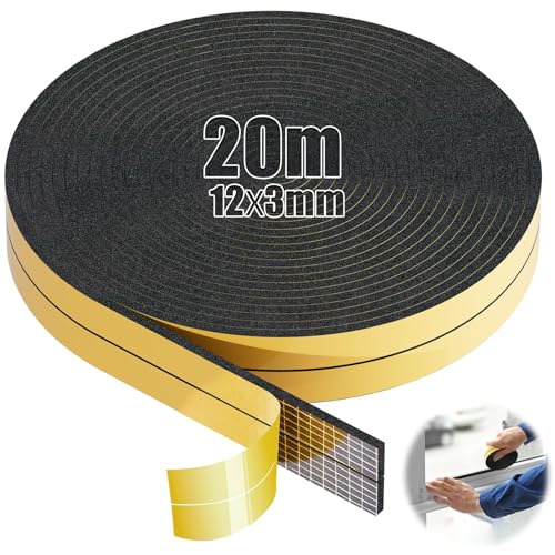 SWTYExt 20 m skumgummi självhäftande 12 mm (B) x 3 mm (D) Tätningstejp självhäftande skumremsor tätning självhäftande skumtejp svart skumgummi tätning för fönster dörr spishällar