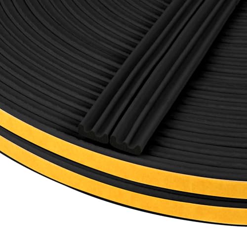 GOKINDOR Självhäftande tätningstejp, dörrtätning, gummitätning, vattentät, för dörrkarm/fönster, D-profil, tätningsremsor, 12 m