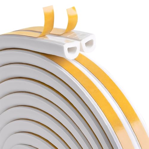 20 m tätningstejp för dörrar, dörrtätning, dörrar, fönster, självhäftande gummiskum, sigillränder, ljudisolering, väderremsa, tätningstejp, självhäftande (9 mm x 6 mm/20 m, vit)