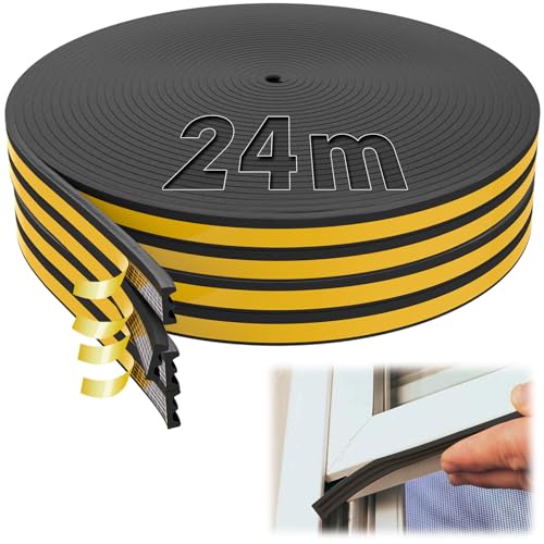 SWTYExt 24 m fönstertätning E-profil fönstertätning ljudisolering dörrtätning antikollision tätningstejp självhäftande tätningstejp fönster svart gummitätning för dörrar träfönster luckor sprickor