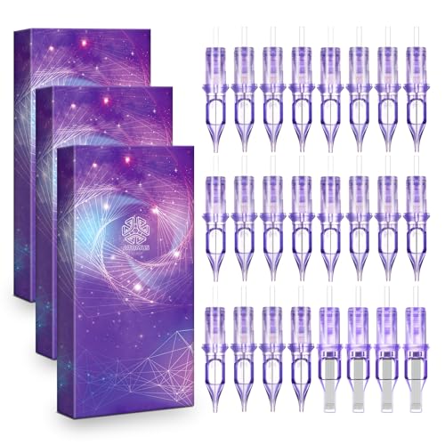 ATOMUS 50pcs Purple Tattoo Cartridge Needles - 1005RS, 7RS, 9S, 7M1, 9M1, 11M1, 7RM, 9RM, 11RM, 15RM for Pen Rotary Machine Supplies
