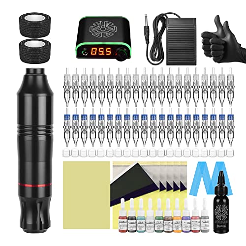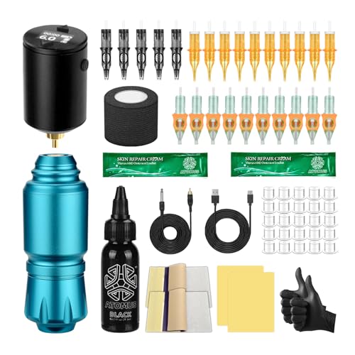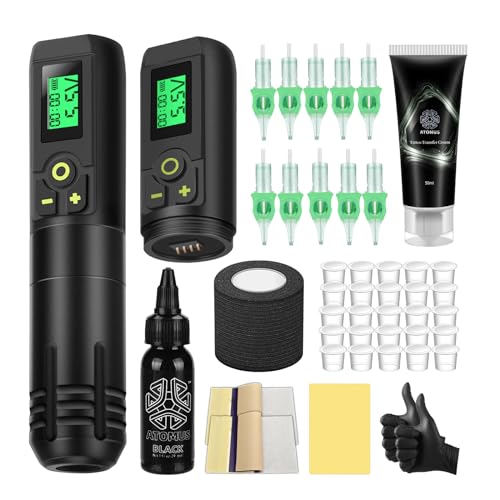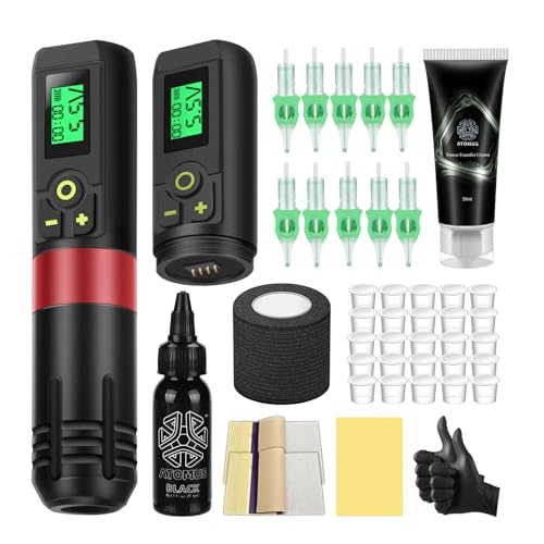 Tattoo Pen Kit ATOMUS Professional Cartridge Tattoo Machine Kit Complete Tattoo Cartridge Needles Power Supply Inks Caps Kit for Tattoo Artist
