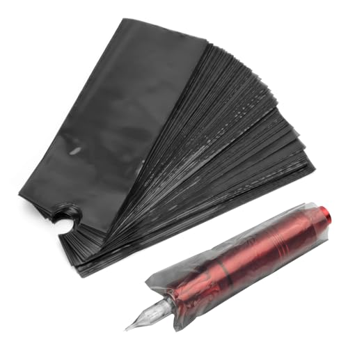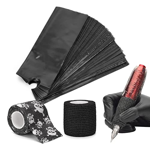 ATOMUS 200pcs Disposable Tattoo Pen Bag Black with 2pcs Self-adhesive Bandage Plastic Cover Bags Tattoo Machine Pen Bag Tattoo Machine Accessories