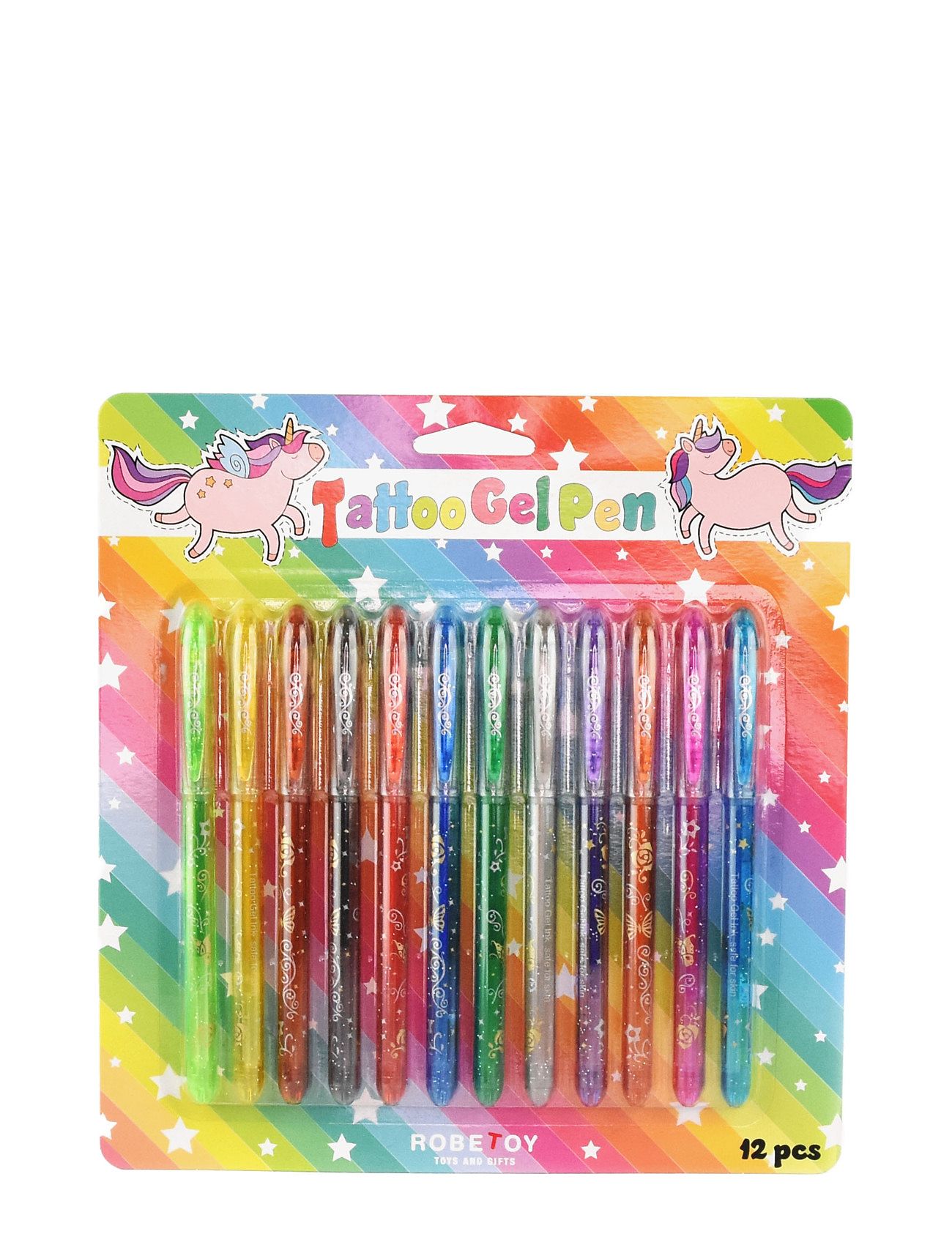 AOMIG Tattoo Pen Set, 6 Glitter Color Marker Tatuering Penna med 9 schabloner och 2 ansiktsfärgade strass, Tattoo Gel Pens Set för pojkar Flickor Halloween Party Dress Up