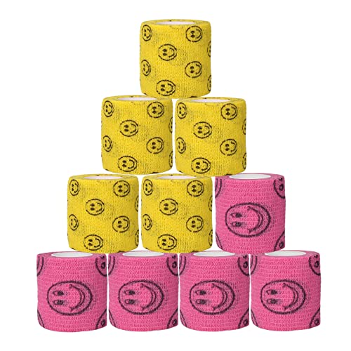 ATOMUS 10pcs Self Adhesive Bandage 5cm Cohesive Bandage Tape Wrap for Tattoo Grip Bandage Machine Pen Pet Vet First Aid Sports Wrist and Ankle(Smile)