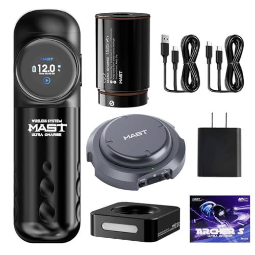 Mast Tattoo Kit Fold2 Pro Wireless Tattoo Machine Pen Rotary Tattoo Gun 7 Strokes Length 2000mAh Battery Powerful Motor by Mcore Tattoo Cartridges Needles for Pro Artists