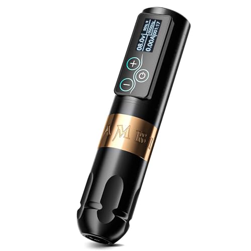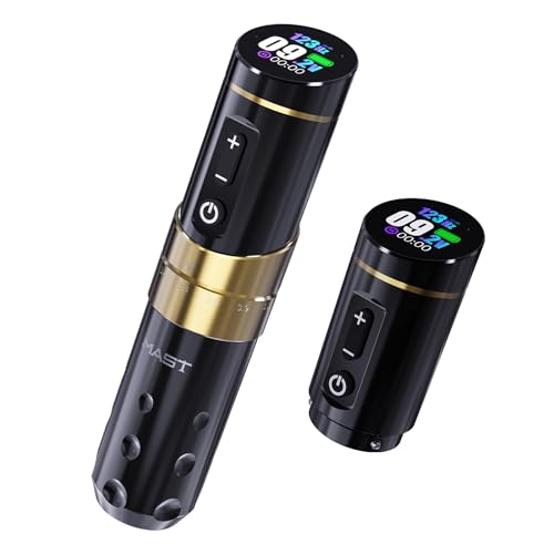 Mast Flip3 Wireless Tattoo Machine Gun Rotary Tattoo Cartridges Pen with 7Adjustable Strokes 2.4mm - 4.2mm with 2Pcs Batteries 1800mAh Power Supply for Beginners and Tattoo Artist