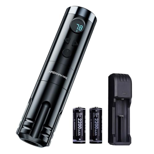 Arenahawk Tattoo Maschine Set Wireless Tattoo Pen Maschine Rotary Maschine Battery Pen with 2pcs Batteries (4.0mm black)