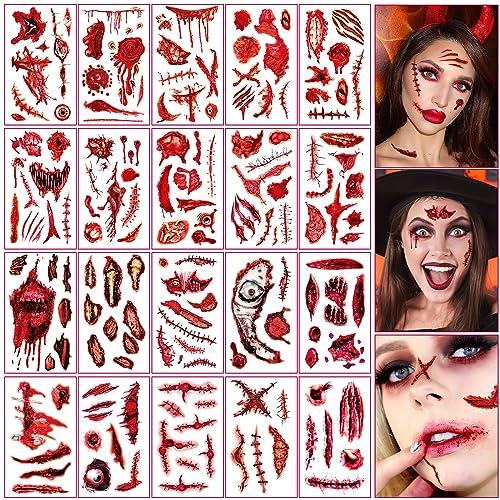 FainFun Halloween Tatuering Sår & Ärr Set - 20 Stycken Ansikte Zombie Makeup Rekvisita
