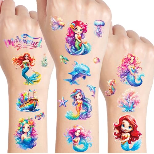 Tillfälliga Tatueringar för Barn, 12 ark Sjöjungfru Tillfällig Tatuering Klistermärken Set för flickor Pojkar Barntatueringar Vattentät Som Födelsedag Present Festival Party Dekoration