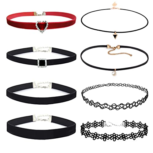 EQLEF Spets kraghalsband set, gotiskt hänge halsband tatuering choker för kvinnor tonåringar flickor vit och svart (typ 1)