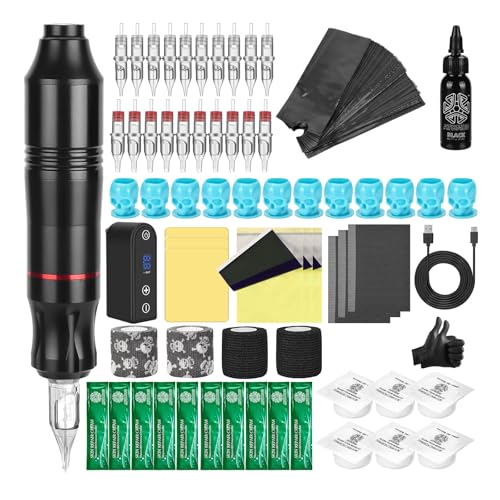 Komplett Rotary Tattoo Pen Machine Kit, ATOMUS Tattoo Kit Professional med DC strömförsörjning 3RL 5RM patronnålar 30ml bläck tatuering skalle bandage bläckkoppar för tatuering nybörjare konstnärer