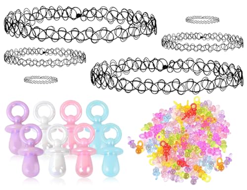 Lhbwhiz Choker tatuering halsband 90-tal set, kostym 90-tal tillbehör kvinnor, halsband armband nappkedja, napp, elastisk krage, dekorativ napp, napp, för temafest 80-talet, universal, Plast, Ej
