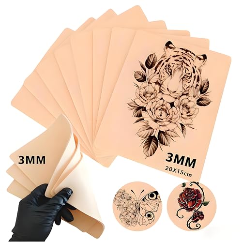 3 mm tatuering övningshud 8 st 20 x 15 cm falsk hud 3 mm silikon tom dubbelsidig övningshud kit för nybörjare och tatueringskonstnärer tatuering och ögonbryn