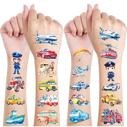 Tillfälliga Tatueringar för Barn, 12 ark Fordon Tillfällig Tatuering Klistermärken Set för flickor Pojkar Barntatueringar Vattentät Som Födelsedag Present Festival Party Dekoration