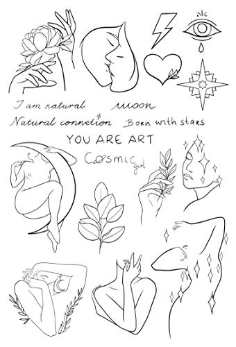 Tillfällig Tatuering Uppsättning av Tatsy, Naturlig Uppsättning, Enkel, Svart, Minimalistisk, Stjärna, Hjärta, Öga, Blommig, Unik Design, Fest, Festival, Falska Tatueringar, Vuxna, Barn, Tonåringar