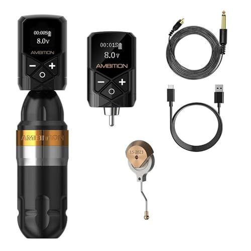 Ambition Ninja Ultra Trådlös tatueringsmaskin med intelligent faktureringsfunktion - Roterande patronpenna med 2 st 1900 mAh tatueringspistol kärnlös motor rak drivstång
