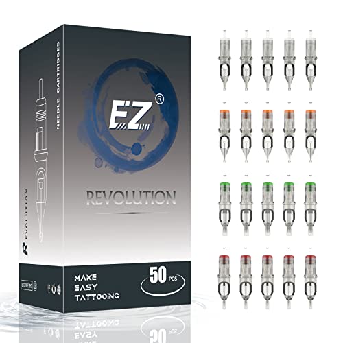 EZ Nålar för Tatueringspatroner Assorterad - 50Styck #10 Blandad (3RL 5RL 7M1 9RM) & #12 (7RS) Tatueringsnålar för Tatueringsmaskin - Revolution