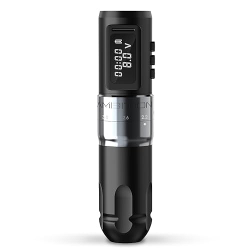 Ambition MARS-U Trådlös tatueringsmaskin med justerbart slag - Roterande patron tatueringspenna med extra 1800mAh Power Coreless Motor Digital LED-skärm