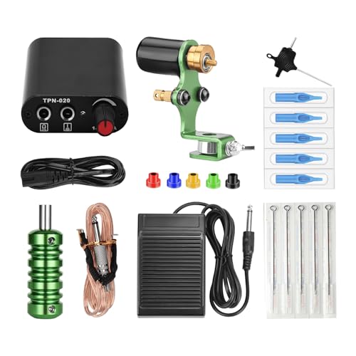 ATOMUS Professionell komplett tatueringsmaskinsats tatueringsmaskinpistol tatueringsmaskin Strömförsörjning Tatueringstillbehör Fotpedal Clip Cord Tattoo Needel Gummimaskin O-ring och gummiband (grön)