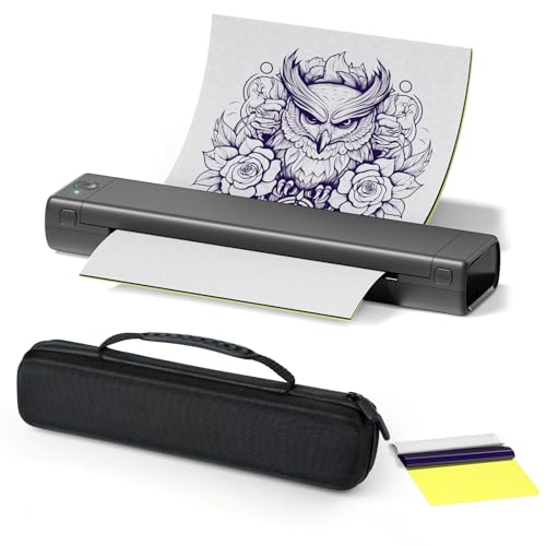 Itari M08F tatueringsskrivare, termisk skrivare tatuering stencil skrivare med IPad & telefon och PC, tatueringsmaskin set med förvaringslåda och 10 st tatueringsöverföringspapper för tatueringskonst
