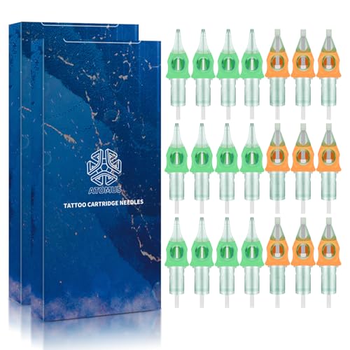 ATOMUS 50st tatueringspatron nålar blandad storlek Round Liner Shader Magnum Round Mag # 12 Standard grön 3RL 5RL 7RL 9RL 3RS 5RS 7RS 9RS 5M1 7M1 silikon tatueringsnålar för tatueringspenna