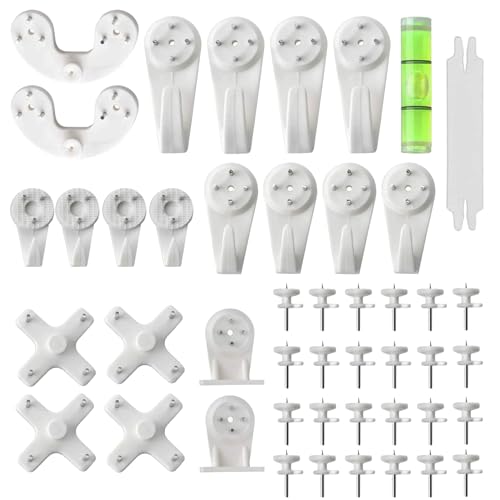 Ewwtrey 62 stycken bildkrokar utan borrning, hängande bilder utan borrning, tavelkrok för spikning, spårlösa osynliga väggkrokar, multifunktionella bildkrokar för hängande bilder, ramar klockor